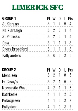 Elsewhere, in Newcastle West, Ballysteen had a 1-11 to 0-9 win over Rathkeale. The return of Danny Neville, Pakie Moran and Padraigh Vaughan strengthened them considerably after losing their first three games.