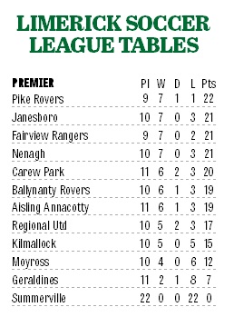JANESBORO:John Mulready; Danny O'Neill; Aled Harkin; Aidan Hurley; Richie Mullins; David Donnan; Donie Curtin; Steven Bradley; Adrian Power; John Tierney; Kevin Barry. Subs: Mike Ryan