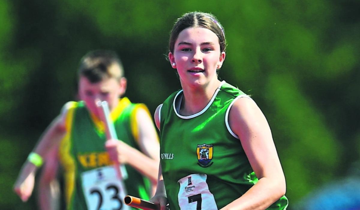 Megan O’Shea, Crecora-Patrickswell, on her way to winning the girls U13 relay race during the Aldi Community Games National Track and Field finals at Carlow Sports Campus