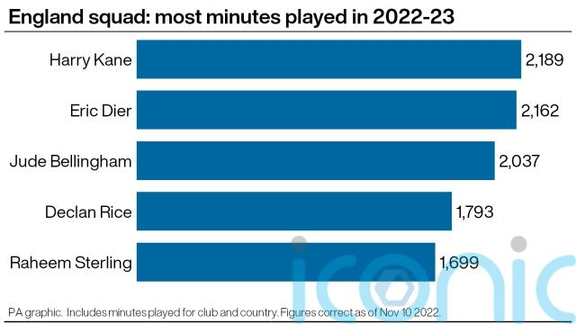 Here, the PA news agency looks at how Southgate’s selection compares with previous squads, and which players are most likely to be battling fatigue.