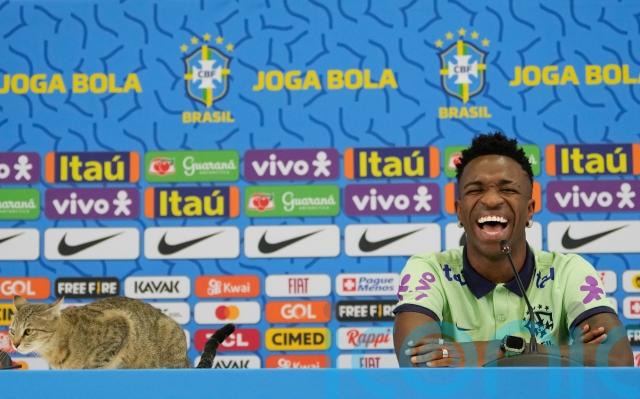 But ‘Dave’ was not the only member of the feline community to make an appearance as Brazil’s Vinicius Jr had a visitor during his press conference on Wednesday.