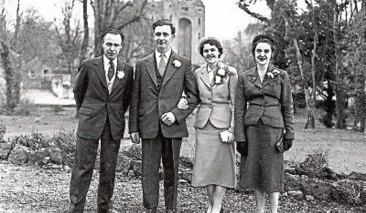 Bunratty in the background: After the McCarthy-Woulfe wedding, which took place in Cratloe in February 1956, the wedding party took the short trip to the famous castle for their wedding photograp