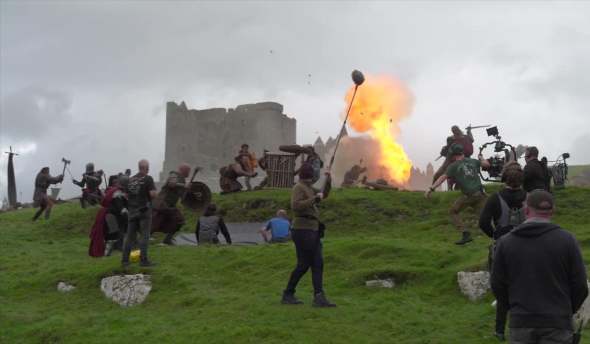 The pilot episode was filmed last October at Troy Studios and Pery Square in Limerick and across the Mid-West, including at Knappogue Castle and Cratloe Woods in Clare, with battle shots filmed in Cahir Castle and beside The Rock of Cashel in Tipperary.