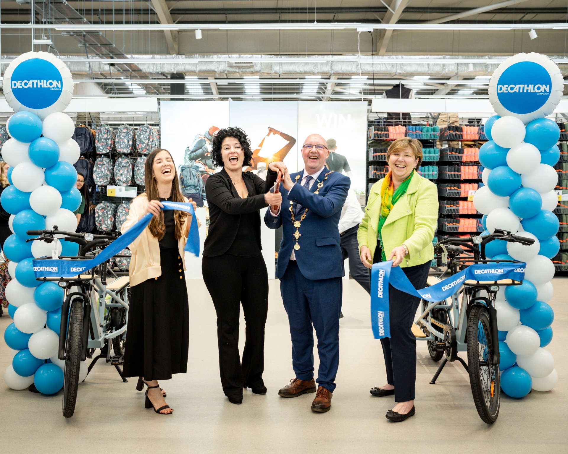 Mayor of Limerick city and county, Cllr Francis Foley, attended the ribbon-cutting ceremony along with CEO of Decathlon Ireland, Elena Pecos.