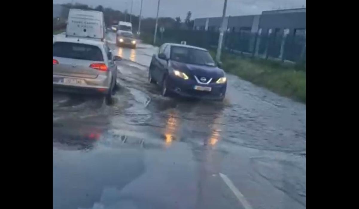 The video above shows water gushing onto the Old Ballysimon Road as traffic tries to navigate the flooding.