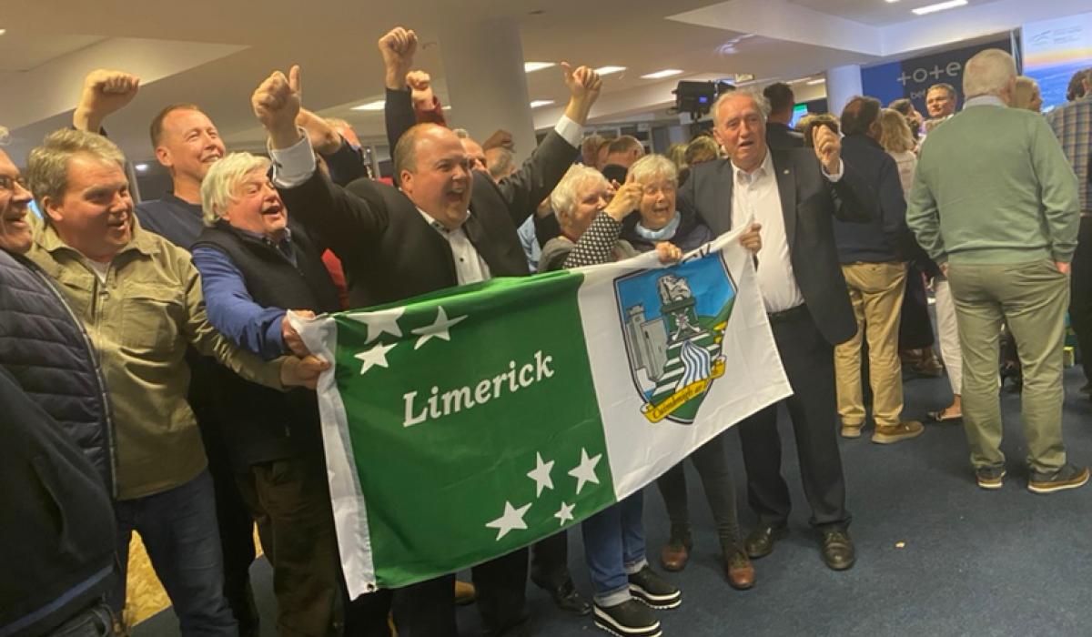 There were elated scenes as he was hoisted into the air by his supporters and he proudly grappled to wave a large Limerick flag.