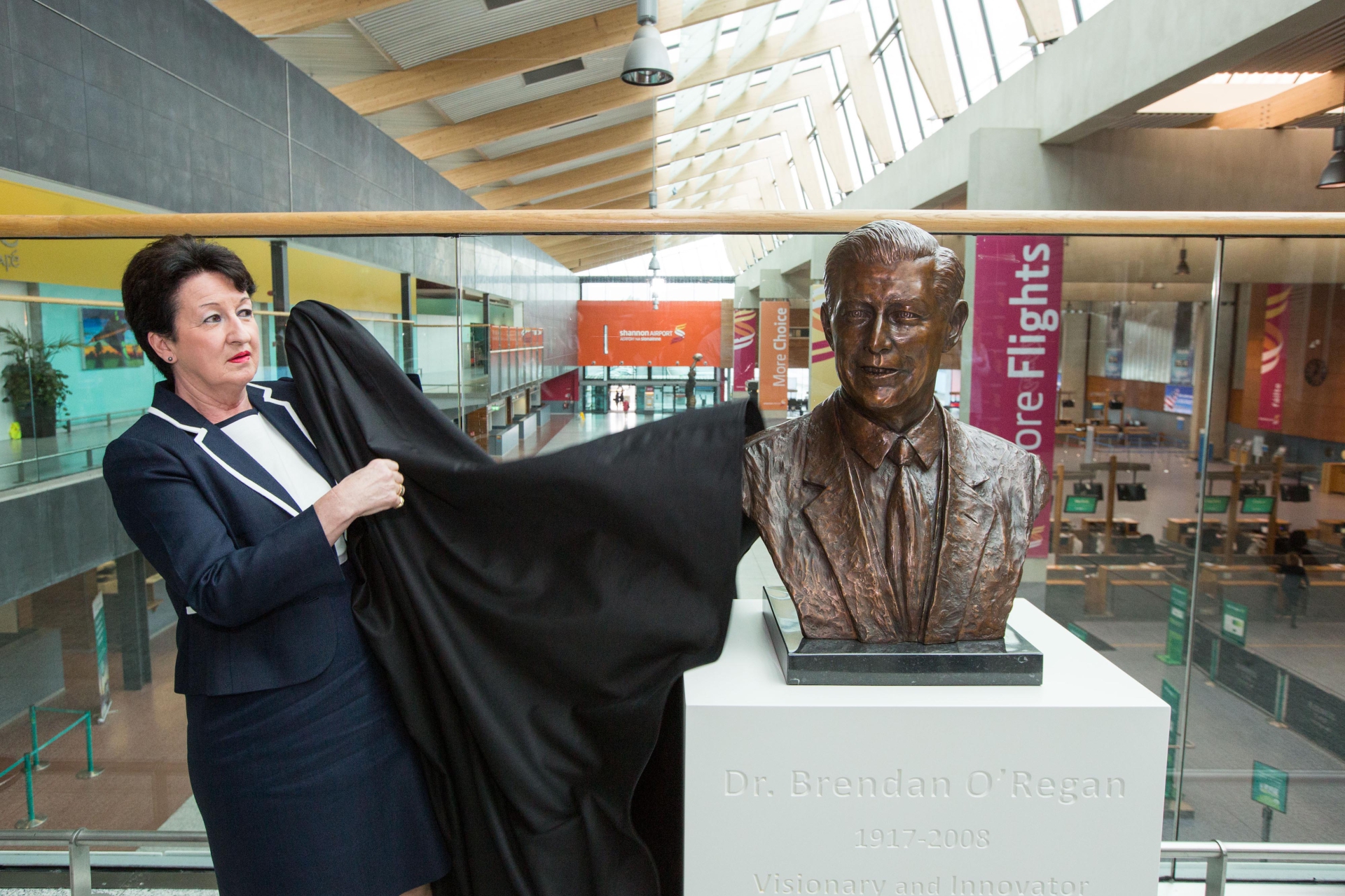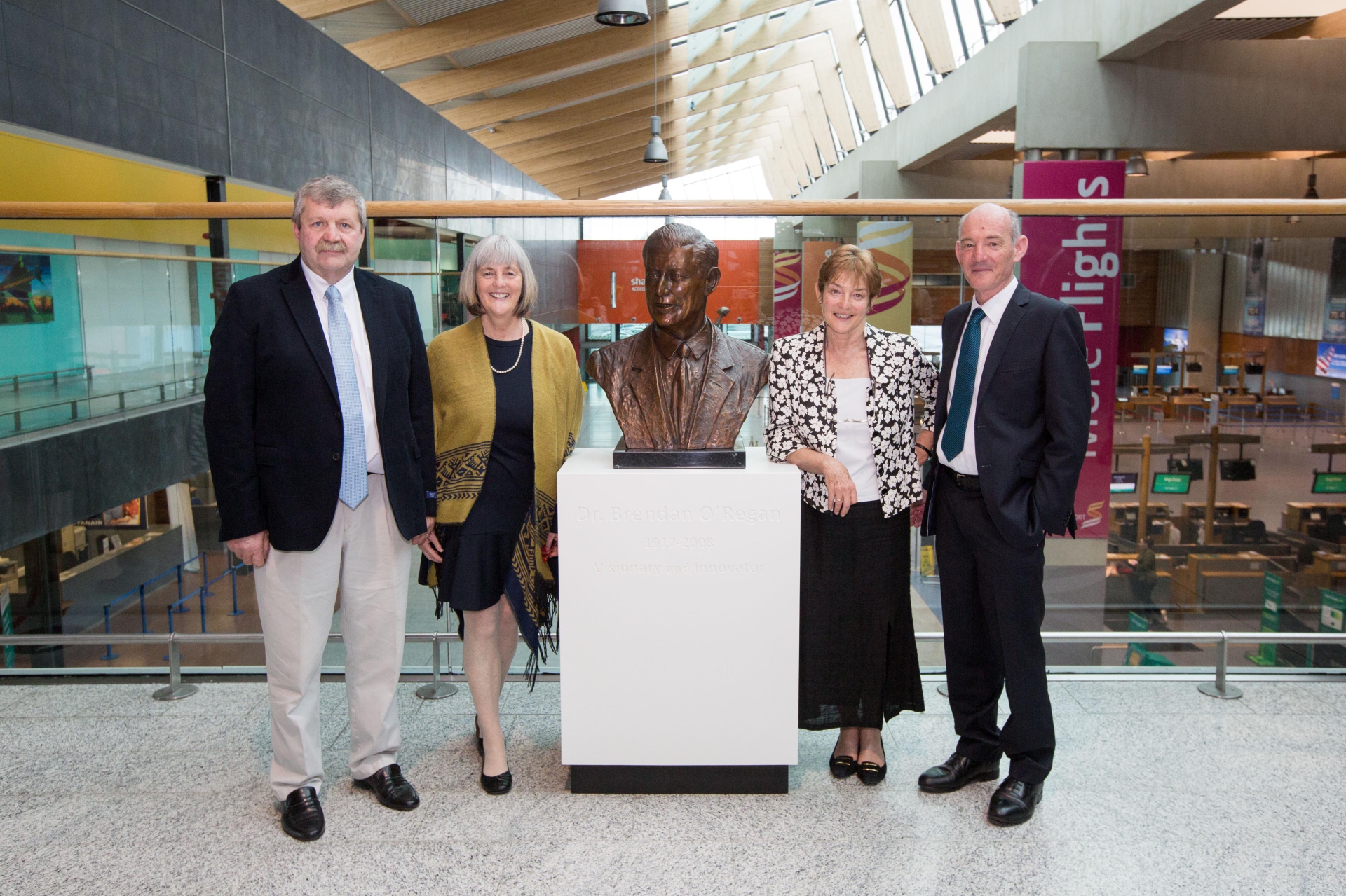 The late Dr Brendan O’Regan, a native of Sixmilebridge, was honoured at Shannon Airport this Monday as a bust was unveiled to him in the airport he transformed.